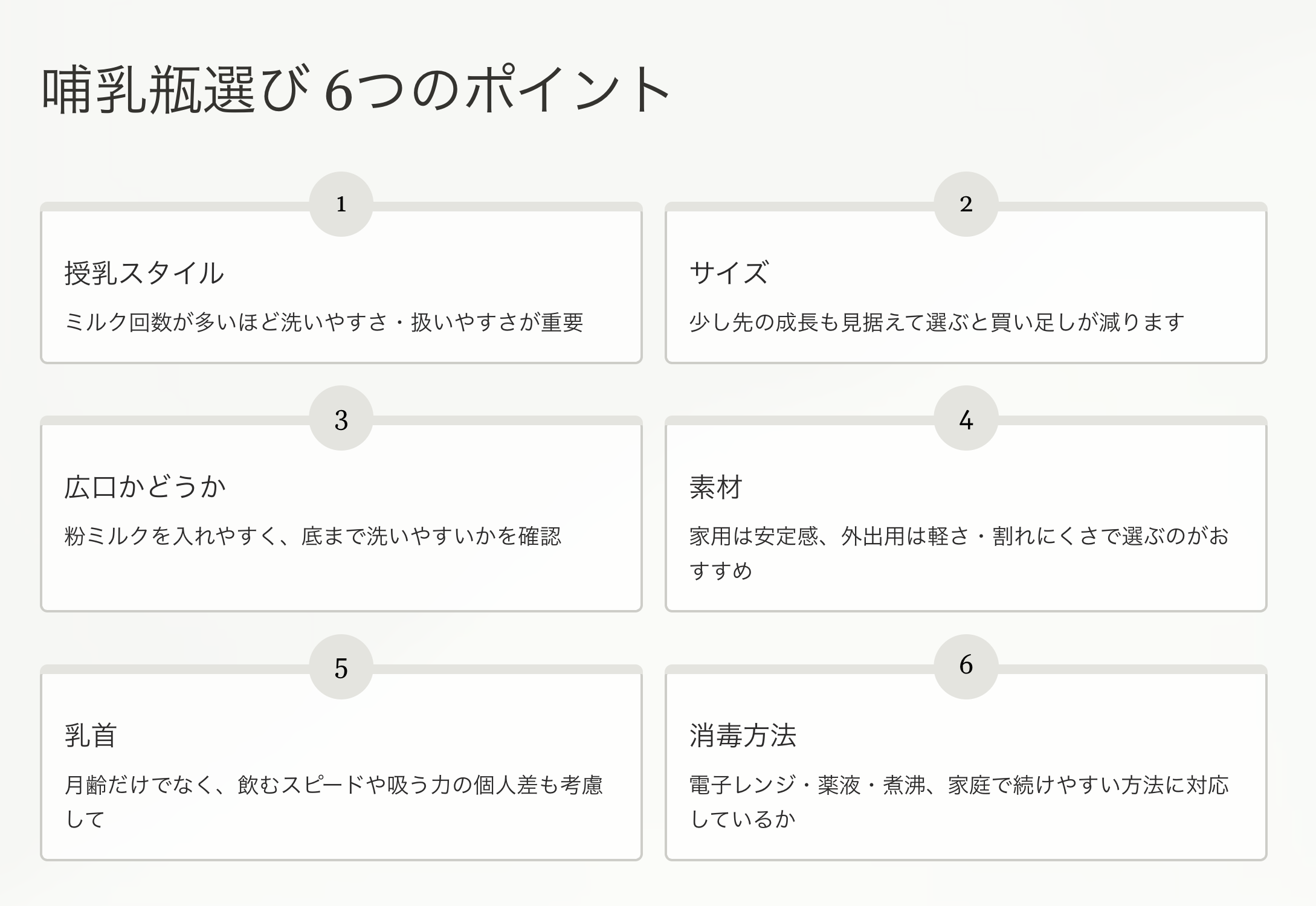 哺乳瓶選びで見たい6つのポイント