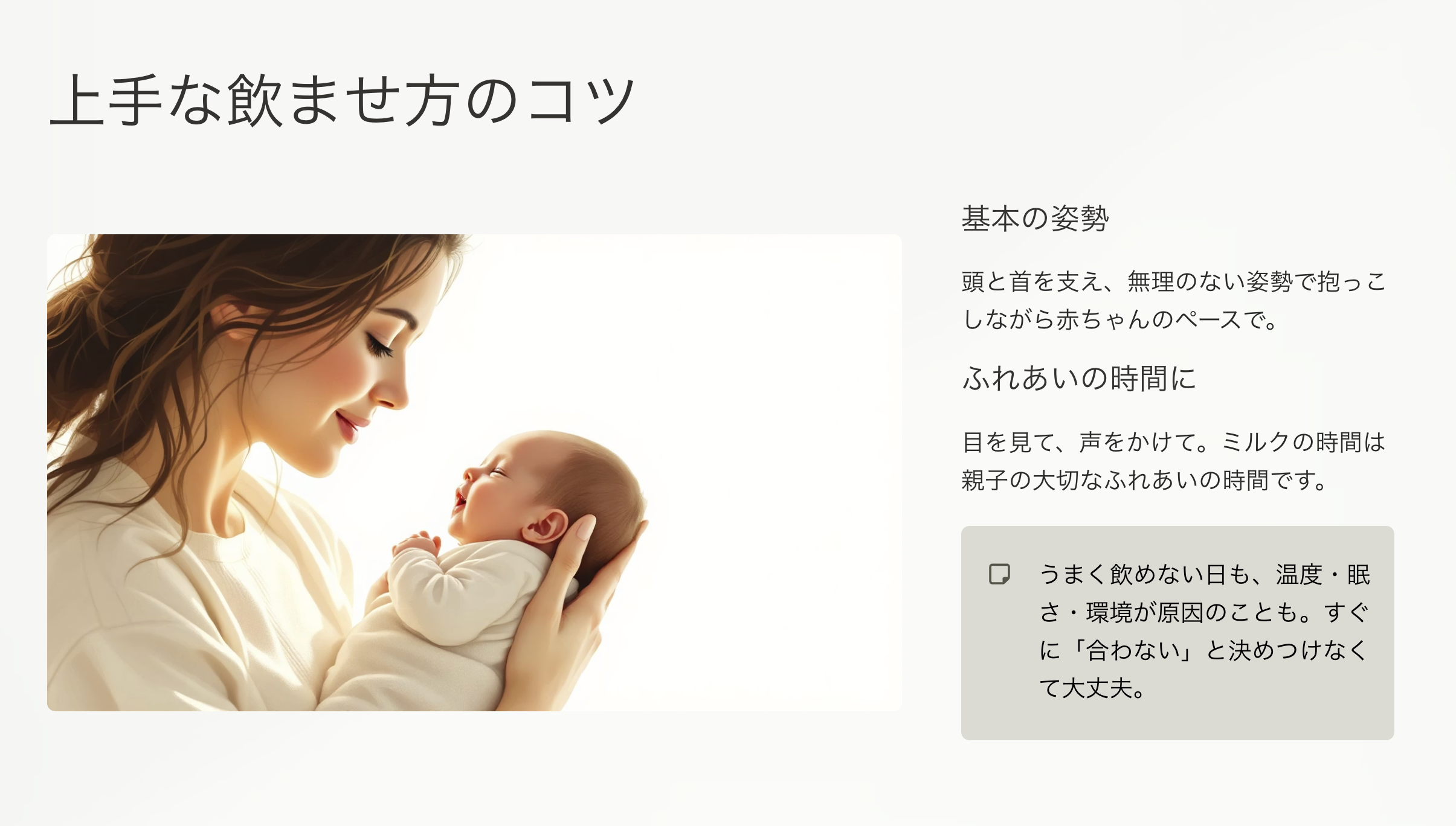 飲ませる時間は、ただ栄養をとるためだけの時間ではありません。