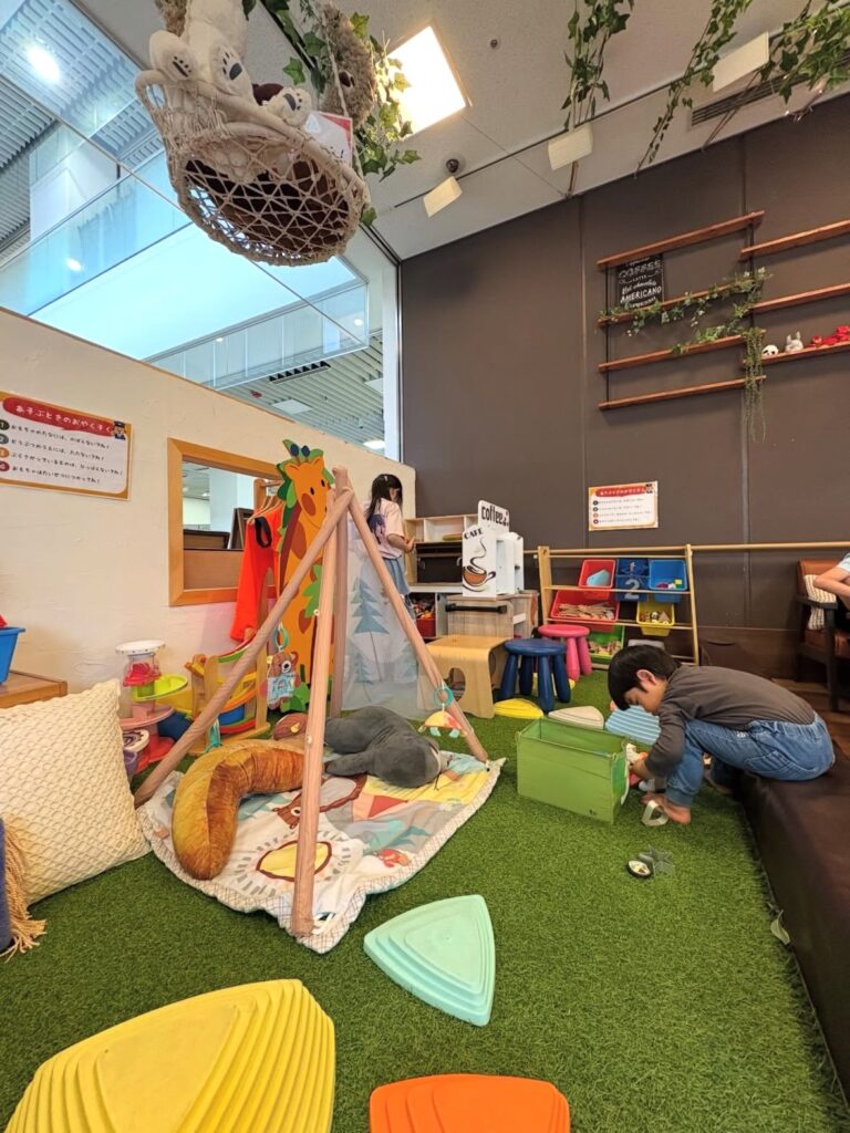 遊具の隣の屋外席は時間無制限。※お支払いはキャッシュレス決済のみ