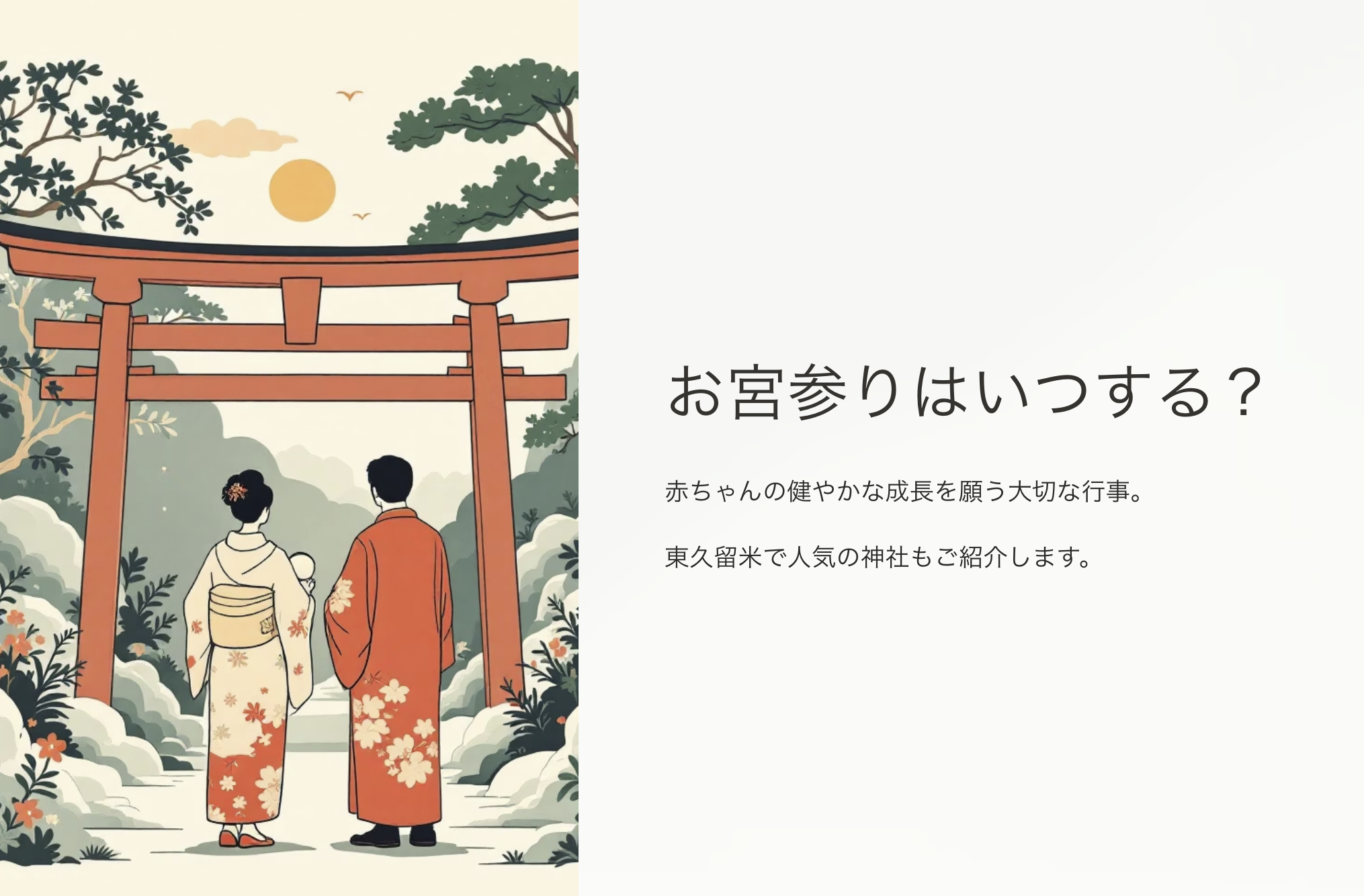 お宮参りは、赤ちゃんが生まれて初めて迎える大切な節目。