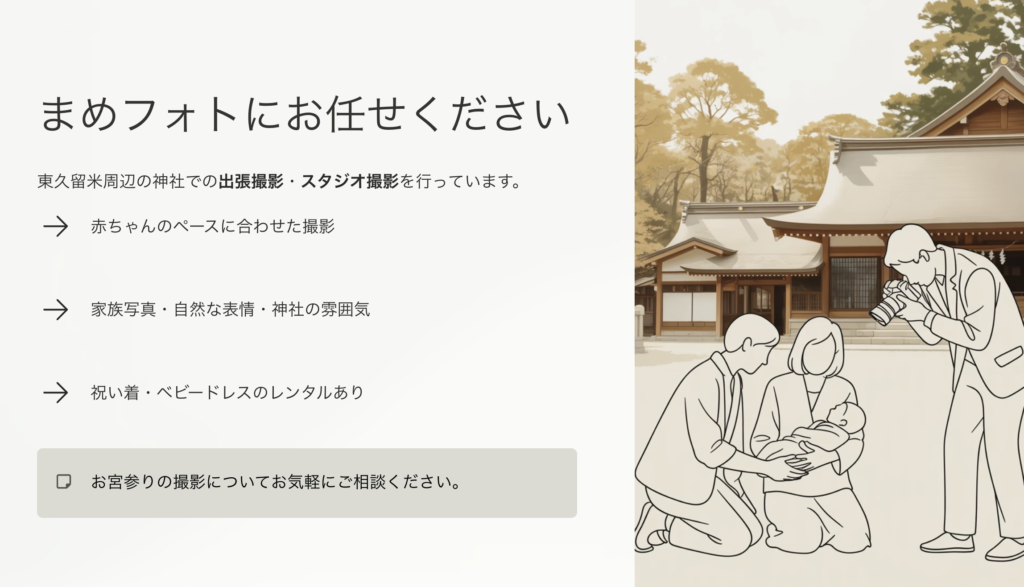 ついて、東久留米のフォトスタジオ「まめフォト」の視点から紹介します。