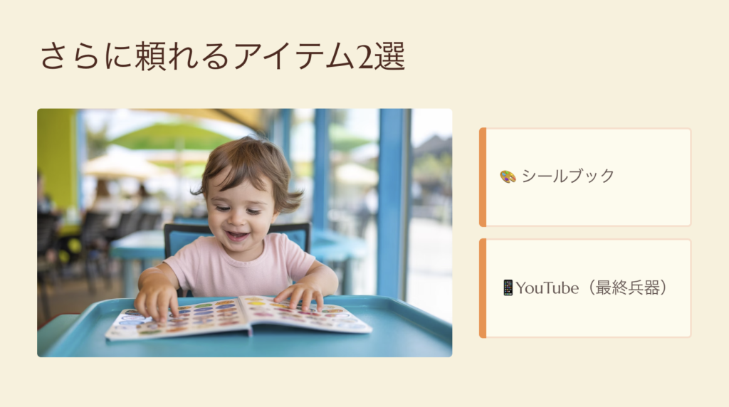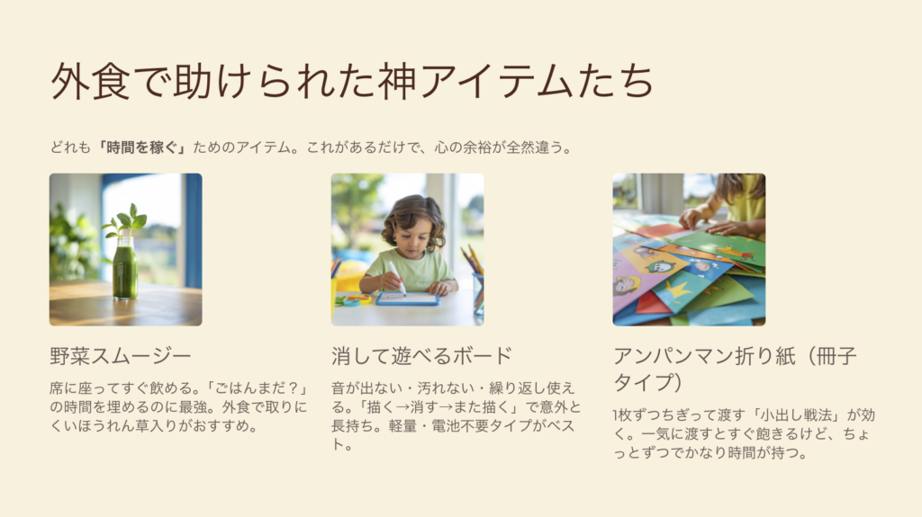 外食って周りの目もあるから、「静かに遊べる系」はほんとに助かる。