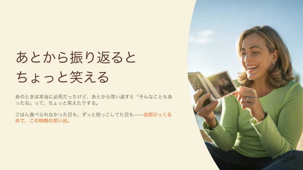 あのときは本当に必死だったけど、あとから思い返すと「そんなこともあったな」って、ちょっと笑えたりする。