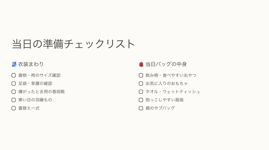 ここからは、準備しやすいようにチェックリスト形式でまとめます。