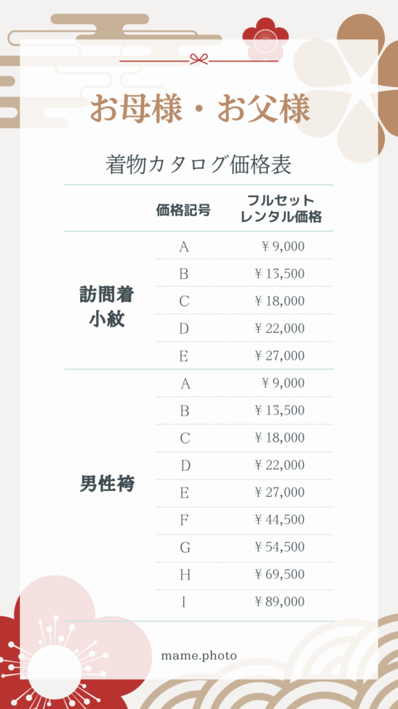 他の衣装も検討したい方やママ・パパのお着物レンタル希望の場合は、ぜひキモノカタログ↓をご活用ください♪